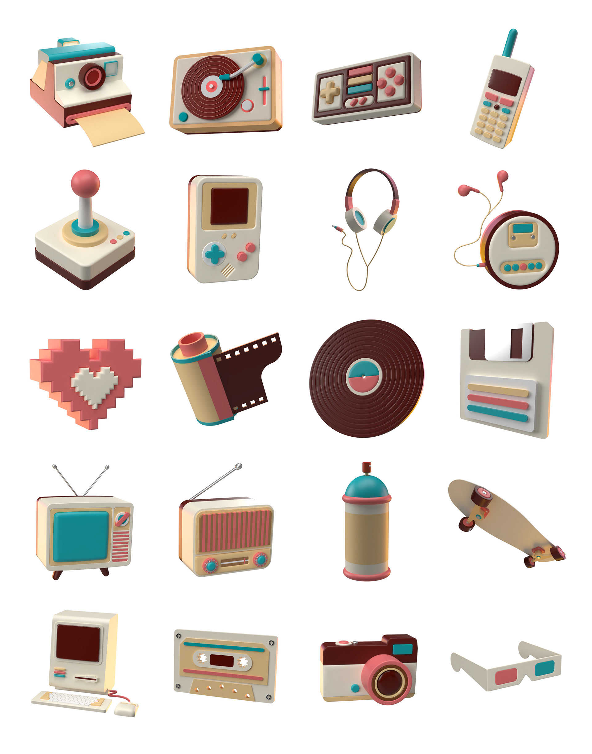 Retro Nostalgic 3D Icons